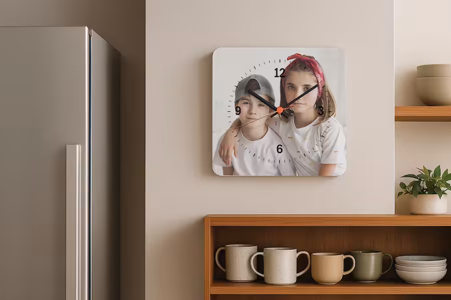 L’Orologio da Parete personalizzato trasforma i tuoi ricordi in un oggetto funzionale e decorativo. Ogni volta che guardi l’ora, rivivi un momento speciale.