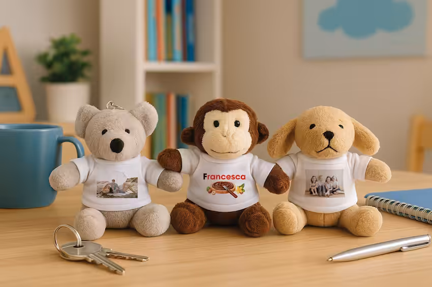 • Portachiavi peluche con piccola t-shirt personalizzata con foto